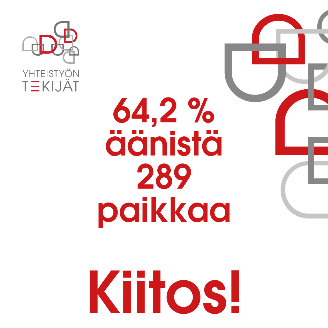 – Tavoittelimme korkeampaa ääniosuutta kuin nykyinen ryhmien välinen jako, mutta jäimme hieman tavoitteesta. Kaikesta huolimatta turvasimme vahvan enemmistön, mikä on aina merkittävä tuen ilmaisu tehdylle työlle, sanoo Teollisuusdemarien puheenjohtaja Riku Aalto.